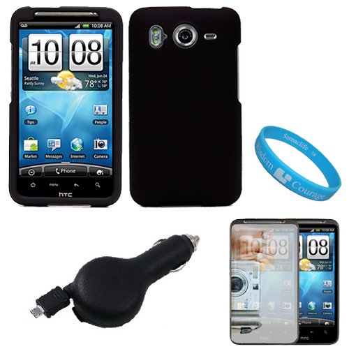 Blackfriday Black Durable Protective Rubberized Crystal Hard Case Cover for AT&T Wireless New HTC Inspire 4G Android Smart Phone + Mirror Screen Protector + Black Retractable Car Charger with IC Chip + SumacLife TM Wisdom Courage WristbandNow you can safely carry and protect your HTC Inspire 4G with this stylish protector case. The quality material used to create this case provides your phone with protection and prevents unnecessary bumps, dents, and scratches from accumulating on your phone. This case cover has been designed as a two piece snap on case to protect the front and back or your HTC Inspire 4G. Its durable hard shell exterior provides your phone with excellent shock absorbance and impact protection. When it comes to your daily travel and protection needs this case is the perfect solution. You'll be impressed with not only quality but the smooth textured design of this case. (Phone NOT INCLUDED) Package also includes a Mirror Screen Protector. This screen protector will prevent scratches on your phone's lcd display. This screen protector also acts like a mirror when screen is in sleep mode or turned off. The screen protector comes with a cleaning cloth and a plastic card to help you apply the screen protector. Features: Bubble-Free Application, free from Fingerprints, and dust repelling. + Also included is a Retractable IC Chip Car Charger. The power cord coils into the charger with the push of a button to avoid any tangled cables. This charger also features a LED Power Indicator light to let you know when your device is charging. It has also been equipped with Overcharge Protection, meaning you can leave your device connected to this charger without causing any damage to your device or the battery. + SumacLife TM Wisdom Courage Wristband (Phone is NOT INCLUDED)Cheap Black Durable Protective Rubberized Crystal Hard Case Cover for AT&T Wireless New HTC Inspire 4G Android Smart Phone + Mirror Screen Protector + Black Retractable Car Charger with IC Chip + SumacLife TM Wisdom Courage Wristband ![]() | |