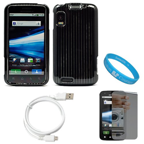 Blackfriday Black Durable Two Piece Protective Rubberized Crystal Hard Case Cover for AT&T New Motorola Atrix 4G Dual Core Android Smart Phone MB860 (Olympus/Atrix 4G) + Mirror Screen Protector + White Micro USB Data Cable Cord + SumacLife TM Wisdom Courage WristbandSafely carry and your Motorola Atrix 4G phone with this stylish two piece crystal hard case cover. Precision constructed with polycarbonate material, this crystal hard case provides reliable protection from accidental bumps and dents. It also prevents unnecessary chips, fingerprints, and scratches form accumulating on your phone. Precise cut-outs have been made for the LCD display screen, jacks, and charger to allow you full access to every function your phone has to offer. When it comes to your travel and protection needs this case is the perfect solution for you. You'll be impressed with not only the quality but with the smooth-textured design and unique style of this case. (Phone NOT INCLUDED) Package also includes a Mirror Screen Protector. This screen protector will prevent scratches on your phone's lcd display. This screen protector also acts like a mirror when screen is in sleep mode or turned off. The screen protector comes with a cleaning cloth and a plastic card to help you apply the screen protector. Features: Bubble-Free Application, free from Fingerprints, and dust repelling. + Micro USB Data Cable. Use this cable to synchronize your micro USB device with your PC. At the same time, you'll be charging the battery without having to connect to a wall socketCheap Black Durable Two Piece Protective Rubberized Crystal Hard Case Cover for AT&T New Motorola Atrix 4G Dual Core Android Smart Phone MB860 (Olympus/Atrix 4G) + Mirror Screen Protector + White Micro USB Data Cable Cord + SumacLife TM Wisdom Courage Wristband ![]() | |