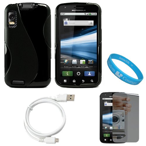 Blackfriday Black Fusion Thermoplastic Polyurethane Protective Dual Textured TPU Silicone Skin Cover Case for AT&T New Motorola Atrix 4G Dual Core Android Smart Phone MB860 (Olympus/Atrix 4G) + Mirror Screen Protector + White Micro USB Data Cable Cord + SumacLife TM Wisdom Courage WristbandSafely carry and protect your Motorola Atrix 4G phone with this Premium Rubberized TPU Gel Silicone Case Cover. This elegant skin cover case has been perfectly manufactured to fit and compliment the mold of the Motorola Atrix 4G. The Thermoplastic Polyurethane material used to create this skin cover resists, tarring, stretching and deformation. It also protects and prevents unnecessary bumps, dents, and scratches from accumulating on your phone. Each opening for the LCD display screen, jacks, camera, and charger have been precisely cut-out to allow you full access to every function the Motorola Atrix 4G has to offer. When it comes to your daily travel and protection needs, this skin cover is the perfect solution. You'll be impressed with not only the quality but the smooth-textured design of this case. (Phone NOT INCLUDED) Package also includes a Mirror Screen Protector. This screen protector will prevent scratches on your phone's lcd display. This screen protector also acts like a mirror when screen is in sleep mode or turned off. The screen protector comes with a cleaning cloth and a plastic card to help you apply the screen protector. Features: Bubble-Free Application, free from Fingerprints, and dust repelling. + Micro USB Data Cable. Use this cable to synchronize your micro USB device with your PC. At the same time, you'll be charging the battery without having to connect to a wall socketCheap Black Fusion Thermoplastic Polyurethane Protective Dual Textured TPU Silicone Skin Cover Case for AT&T New Motorola Atrix 4G Dual Core Android Smart Phone MB860 (Olympus/Atrix 4G) + Mirror Screen Protector + White Micro USB Data Cable Cord + SumacLife TM Wisdom Courage Wristband ![]() | |