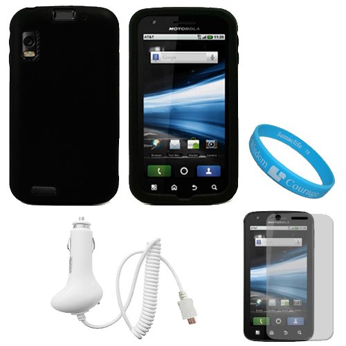 Blackfriday Black Rubberized Protective Gel Silicone Skin Cover Case for AT&T New Motorola Atrix 4G Dual Core Android Smart Phone MB860 (Olympus/Atrix 4G) + Clear Screen Protector + White Rapid Car Charger with IC Chip + SumacLife TM Wisdom Courage WristbandSafely carry and protect your mobile phone with this Premium Rubberized Soft Gel Silicone Case Cover. This elegant skin cover case is perfectly manufactured to fit and compliment the mold of the Motorola Atrix 4G with a soft-smooth texture. The gel silicone material used to create this skin cover resists, tarring and deformation. It also protects and prevents unnecessary bumps, dents, and scratches from accumulating on your phone. Each opening for the camera, jacks, and charger have been precisely cut-out to allow you full access to every function of the Motorola Atrix 4G. When it comes to your travel and protection needs this skin cover is the perfect solution. You'll be impressed with not only the quality but the unique style and elegance this skin cover has to offer. (Phone NOT INCLUDED) Package also includes a Clear Screen Protector. This screen protector will prevent scratches on your phone's lcd display screen without sacrificing visibility. The screen protector comes with a cleaning cloth and a plastic card to help you apply the screen protector. Features: Bubble-Free Application, free from Fingerprints, and dust repelling. + Also includes a Rapid IC Chip Travel Wall Charger. This charger features an LED Power Indicator light to let you know when your device is charging. It has also been equipped with Overcharge Protection, meaning you can leave your phone connected to this charger without causing any damage to your battery or your phone. + SumacLife TM Wisdom Courage WristbandCheap Black Rubberized Protective Gel Silicone Skin Cover Case for AT&T New Motorola Atrix 4G Dual Core Android Smart Phone MB860 (Olympus/Atrix 4G) + Clear Screen Protector + White Rapid Car Charger with IC Chip + SumacLife TM Wisdom Courage Wristband ![]() | |