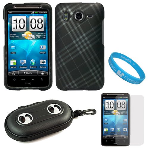 Blackfriday Matte Black with Silver Plaid Design Protective Rubberized Crystal Hard Case Cover for AT&T Wireless New HTC Inspire 4G Android Smart Phone + Clear Screen Protector + Includes Black Portable Multi Purpose Case with Built in Audio Speakers + SumacLife TM Wisdom Courage WristbandNow you can safely carry and protect your HTC Inspire 4G with this stylish protector case. The quality material used to create this case provides your phone with protection and prevents unnecessary bumps, dents, and scratches from accumulating on your phone. This case cover has been designed as a two piece snap on case to protect the front and back or your HTC Inspire 4G. Its durable hard shell exterior provides your phone with excellent shock absorbance and impact protection. When it comes to your daily travel and protection needs this case is the perfect solution. You'll be impressed with not only quality but the smooth textured design of this case. (Phone NOT INCLUDED) Package also includes a Clear Screen Protector. This screen protector will prevent scratches on your phone's lcd display screen without sacrificing visibility. The screen protector comes with a cleaning cloth and a plastic card to help you apply the screen protector. Features: Bubble-Free Application, free from Fingerprints, and dust repelling. + VSound Multi Purpose Case has powerful built-in speakers which allows you to hear your music with depth and clarity. High quality stereo sound operates from two AA batteries (not included). Compatible with any audio device with a 3.5mm jack. Protect your cell phone, MP3 player, PDA or other device with this sturdy and convenient zipper case with hanging clip all while playing your favorite tunes. + SumacLife TM Wisdom Courage WristbandCheap Matte Black with Silver Plaid Design Protective Rubberized Crystal Hard Case Cover for AT&T Wireless New HTC Inspire 4G Android Smart Phone + Clear Screen Protector + Includes Black Portable Multi Purpose Case with Built in Audio Speakers + SumacLife TM Wisdom Courage Wristband ![]() | |