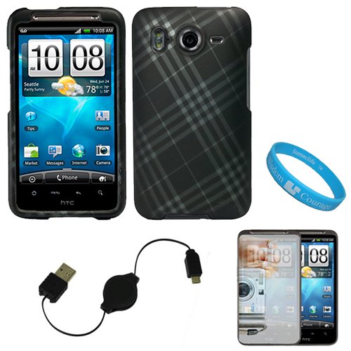 Blackfriday Matte Black with Silver Plaid Design Protective Rubberized Crystal Hard Case Cover for AT&T Wireless New HTC Inspire 4G Android Smart Phone + Mirror Screen Protector + Black Retractable Micro USB Data Cable Cord + SumacLife TM Wisdom Courage WristbandNow you can safely carry and protect your HTC Inspire 4G with this stylish protector case. The quality material used to create this case provides your phone with protection and prevents unnecessary bumps, dents, and scratches from accumulating on your phone. This case cover has been designed as a two piece snap on case to protect the front and back or your HTC Inspire 4G. Its durable hard shell exterior provides your phone with excellent shock absorbance and impact protection. When it comes to your daily travel and protection needs this case is the perfect solution. You'll be impressed with not only quality but the smooth textured design of this case. (Phone NOT INCLUDED) Package also includes a Mirror Screen Protector. This screen protector will prevent scratches on your phone's lcd display. This screen protector also acts like a mirror when screen is in sleep mode or turned off. The screen protector comes with a cleaning cloth and a plastic card to help you apply the screen protector. Features: Bubble-Free Application, free from Fingerprints, and dust repelling. + Micro USB Data Cable. Use this cable to synchronize your micro USB device with your PC. At the same time, you'll be charging the battery without having to connect to a wall socket + SumacLife TM Wisdom Courage Wristband (Phone is NOT INCLUDED)Cheap Matte Black with Silver Plaid Design Protective Rubberized Crystal Hard Case Cover for AT&T Wireless New HTC Inspire 4G Android Smart Phone + Mirror Screen Protector + Black Retractable Micro USB Data Cable Cord + SumacLife TM Wisdom Courage Wristband ![]() | |