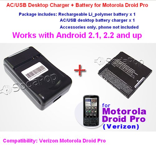 Blackfriday New Battery+Travel AC Desktop Charger for Verizon Motorola Droid Pro A957 XT610 VENUS Android Phone100% Brand New .AC/USB Desktop Charger and Battery for Motorola Droid Pro .Works with Android 2.1, 2.2 and up ... ; Please note : MOTO Droid USB charging capability requires Windows driver (software) to be activated. This Battery Desktop charger, although comes with an USB port, it's not loaded with MOTOROLA's charging driver, therefore, this desktop charger is not intended to be used as a USB wall charger to charge your Motorola Droid battery directly thru your phone. However, this USB port still supports charging capability to your other MP3, MP4 devices or other cell phones such as Nokia, Samsung, HTC .. etc, as long as your usb devices charging function does not require a software to activate and you are using the correct USB cable. Cheap New Battery+Travel AC Desktop Charger for Verizon Motorola Droid Pro A957 XT610 VENUS Android Phone ![]() | |