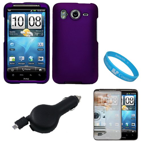 Blackfriday Purple Durable Protective Rubberized Crystal Hard Case Cover for AT&T Wireless New HTC Inspire 4G Android Smart Phone + Mirror Screen Protector + Black Retractable Car Charger with IC Chip + SumacLife TM Wisdom Courage WristbandNow you can safely carry and protect your HTC Inspire 4G with this stylish protector case. The quality material used to create this case provides your phone with protection and prevents unnecessary bumps, dents, and scratches from accumulating on your phone. This case cover has been designed as a two piece snap on case to protect the front and back or your HTC Inspire 4G. Its durable hard shell exterior provides your phone with excellent shock absorbance and impact protection. When it comes to your daily travel and protection needs this case is the perfect solution. You'll be impressed with not only quality but the smooth textured design of this case. (Phone NOT INCLUDED) Package also includes a Mirror Screen Protector. This screen protector will prevent scratches on your phone's lcd display. This screen protector also acts like a mirror when screen is in sleep mode or turned off. The screen protector comes with a cleaning cloth and a plastic card to help you apply the screen protector. Features: Bubble-Free Application, free from Fingerprints, and dust repelling. + Also included is a Retractable IC Chip Car Charger. The power cord coils into the charger with the push of a button to avoid any tangled cables. This charger also features a LED Power Indicator light to let you know when your device is charging. It has also been equipped with Overcharge Protection, meaning you can leave your device connected to this charger without causing any damage to your device or the battery. + SumacLife TM Wisdom Courage Wristband (Phone is NOT INCLUDED)Cheap Purple Durable Protective Rubberized Crystal Hard Case Cover for AT&T Wireless New HTC Inspire 4G Android Smart Phone + Mirror Screen Protector + Black Retractable Car Charger with IC Chip + SumacLife TM Wisdom Courage Wristband ![]() | |