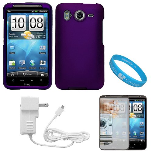 Blackfriday Purple Durable Protective Rubberized Crystal Hard Case Cover for AT&T Wireless New HTC Inspire 4G Android Smart Phone + Mirror Screen Protector + White Rapid Travel Wall Charger with IC Chip + SumacLife TM Wisdom Courage WristbandNow you can safely carry and protect your HTC Inspire 4G with this stylish protector case. The quality material used to create this case provides your phone with protection and prevents unnecessary bumps, dents, and scratches from accumulating on your phone. This case cover has been designed as a two piece snap on case to protect the front and back or your HTC Inspire 4G. Its durable hard shell exterior provides your phone with excellent shock absorbance and impact protection. When it comes to your daily travel and protection needs this case is the perfect solution. You'll be impressed with not only quality but the smooth textured design of this case. (Phone NOT INCLUDED) Package also includes a Mirror Screen Protector. This screen protector will prevent scratches on your phone's lcd display. This screen protector also acts like a mirror when screen is in sleep mode or turned off. The screen protector comes with a cleaning cloth and a plastic card to help you apply the screen protector. Features: Bubble-Free Application, free from Fingerprints, and dust repelling. + Also includes a Rapid IC Chip Travel Wall Charger. This charger features an LED Power Indicator light to let you know when your device is charging. It has also been equipped with Overcharge Protection, meaning you can leave your phone connected to this charger without causing any damage to your battery or your phone. + SumacLife TM Wisdom Courage Wristband (Phone NOT INCLUDED)Cheap Purple Durable Protective Rubberized Crystal Hard Case Cover for AT&T Wireless New HTC Inspire 4G Android Smart Phone + Mirror Screen Protector + White Rapid Travel Wall Charger with IC Chip + SumacLife TM Wisdom Courage Wristband ![]() | |