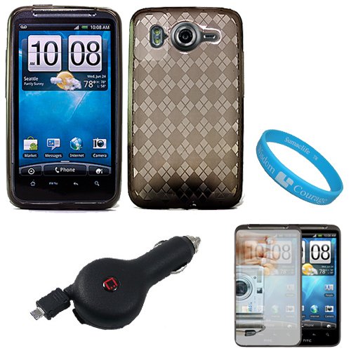 Blackfriday Smoke Argyle Premium Thermoplastic Polyurethane Protective TPU Silicone Skin Cover Case for AT&T Wireless New HTC Inspire 4G Android Smart Phone + Mirror Screen Protector + Black Retractable Car Charger with IC Chip + SumacLife TM Wisdom Courage WristbandSafely carry and protect your HTC Inspire 4G with this TPU Skin Cover. This elegant skin cover case has been perfectly manufactured to fit and compliment the mold of the HTC Inspire 4G. The high-grade Thermoplastic Polyurethane used to create this skin cover resists tarring and deformation. It also protects and prevents unnecessary bumps, dents, and scratches from accumulating on your phone. This silicone skin cover case has been designed with superior front, back, edge, and corner impact resistance to prevent any major or minor damage to your HTC Inspire 4G. Each opening for the camera, headset jack, and charger have been precisely cut-out to allow you full access to every function the HTC Inspire 4G has to offer. When it comes to your daily travel and protection needs this silicone skin is the perfect solution. You'll be impressed with not only the quality, but the style and smooth-textured design of this case. (Phone NOT INCLUDED) Package also includes a Mirror Screen Protector. This screen protector will prevent scratches on your phone's lcd display. This screen protector also acts like a mirror when screen is in sleep mode or turned off. The screen protector comes with a cleaning cloth and a plastic card to help you apply the screen protector. Features: Bubble-Free Application, free from Fingerprints, and dust repelling. + Also included is a Retractable IC Chip Car Charger. The power cord coils into the charger with the push of a button to avoid any tangled cables. This charger also features a LED Power Indicator light to let you know when your device is charging. It has also been equipped with Overcharge Protection, meaning you can leave your device connected to this charger without causing any damage to your device or the battery. + SumacLife TM Wisdom Courage Wristband (Phone is NOT INCLUDED)Cheap Smoke Argyle Premium Thermoplastic Polyurethane Protective TPU Silicone Skin Cover Case for AT&T Wireless New HTC Inspire 4G Android Smart Phone + Mirror Screen Protector + Black Retractable Car Charger with IC Chip + SumacLife TM Wisdom Courage Wristband ![]() | |