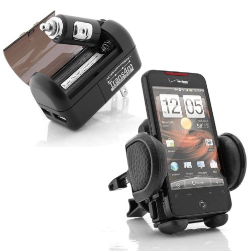 Blackfriday TRANS4M 4-in-1 Travel Charger for Samsung and MORE Android and Windows Smartphones - Includes Professional Series Universal Vent Mount with 360 Degree Swivel Head.TRANS4M Charger for ANDROID PhonesThe Accessory Power TRANS4M cell phone charger is the ultimate solution for charging your ANDROID Phone! This Road Warrior is a unique, compact, and versatile device that "transforms" to give you the kind of power you need in ANY situation. At Home Use the TRANS4M's flip down AC plug in any wall outlet. In the Car Just open the translucent door and fold out the DC plug for car charging! On-The-Go Power Boost Just insert some rechargeable or alkaline AA batteries, or a 9v, into TRANS4M for on-the-go power! Dual Charging Ports You can charge two USB chargeable units like your iPod your Phone at once with this great device. It's equipped with two USB charging ports and actually comes with 2 USB charging cables - MicroUSB & MiniUSB. You can charge your iPhone/iPod using your OEM charging Cable. ***Dual charging is available with the AC and DC charging options. Will not charge the iPad. ALSO INCLUDES..Accessory Power's new Professional Series Auto Air Vent Mount is highly adjustable and allows you to hold your Samsung ANDROID Phone from one of your car's AC Vents.The unique, fully adjustable winged cradle ensures a firm grip, so you don't have to worry about it losing it's grip on your valuable Samsung ANDROID Phone. Mounts to Virtually ANY Vehicle Vent Configuration. There is a ball joint with a 360° swivel bracket that attaches the cradle to the mount so that you can swivel and rotate your Samsung ANDROID Phone any which way you want. Compatible with: Samsung Behold II / Intercept / Transform / Moment / Captivate / Fascinate / Vibrant / Epic 4G / Mesmerize / Focus / Alias / Memoir / Omnia II / Omia 7 / Focus / Nexus S / Solstice / Continuum Cheap TRANS4M 4-in-1 Travel Charger for Samsung and MORE Android and Windows Smartphones - Includes Professional Series Universal Vent Mount with 360 Degree Swivel Head. ![]() | |