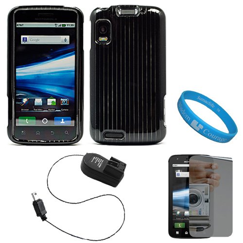 Blackfriday Black Durable Two Piece Protective Rubberized Crystal Hard Case Cover for AT&T New Motorola Atrix 4G Dual Core Android Smart Phone MB860 (Olympus/Atrix 4G) + Clear Screen Protector + Black Retractable Travel Wall Charger with IC Chip + SumacLife TM Wisdom Courage WristbandSafely carry and your Motorola Atrix 4G phone with this stylish two piece crystal hard case cover. Precision constructed with polycarbonate material, this crystal hard case provides reliable protection from accidental bumps and dents. It also prevents unnecessary chips, fingerprints, and scratches form accumulating on your phone. Precise cut-outs have been made for the LCD display screen, jacks, and charger to allow you full access to every function your phone has to offer. When it comes to your travel and protection needs this case is the perfect solution for you. You'll be impressed with not only the quality but with the smooth-textured design and unique style of this case. (Phone NOT INCLUDED) Package also includes a Clear Screen Protector. This screen protector will prevent scratches on your phone's lcd display screen without sacrificing visibility. The screen protector comes with a cleaning cloth and a plastic card to help you apply the screen protector. Features: Bubble-Free Application, free from Fingerprints, and dust repelling. + Also included is a Retractable IC Chip Travel Wall Charger. The power cord coils into the charger with the push of a button to avoid any tangled cables. This charger also features a LED Power Indicator light to let you know when your device is charging. It has also been equipped with Overcharge Protection, meaning you can leave your device connected to this charger without causing any damage to your device or the battery. + SumacLife TM Wisdom Courage WristbandCheap Black Durable Two Piece Protective Rubberized Crystal Hard Case Cover for AT&T New Motorola Atrix 4G Dual Core Android Smart Phone MB860 (Olympus/Atrix 4G) + Clear Screen Protector + Black Retractable Travel Wall Charger with IC Chip + SumacLife TM Wisdom Courage Wristband ![]() | |