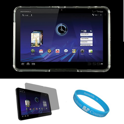 Blackfriday Clear Durable 2 Piece Protective Rubberized Crystal Hard Case Cover for Verizon Wireless New Motorola Xoom Multi-Touch Tablet (Android 3.0 Honeycomb Platform) + Package also inclues a Anti-Glare Clear Screen Protector for the Motorola XOOM Wireless Tablet + SumacLife TM Wisdom Courage WristbandSafely carry and protect your Motorola Xoom Tablet with this stylish protector case. The quality material used to create this case provides you Motorola Xoom tablet with protection and prevents unnecessary bumps, dents, and scratches from accumulating. This case cover has been designed as a two piece snap on case to protect the front and back of your Motorola Xoom Tablet. Its durable hard shell exterior provides you tablet with excellent impact protection. When it comes to your daily travel and protection needs this case is the perfect solution. You'll be impressed with not only the quality but the smooth-textured design of this case. Package also includes a Clear Screen Protector that will prevent scratches on your Motorola Xoom LCD display screen without sacrificing visibility. This screen protector comes with a cleaning cloth and a plastic card to help you apply the screen protector. Features: Bubble-Free Application, free from Fingerprints, and dust repelling. (Tablet NOT INCLUDED) + SumacLife TM Wisdom Courage WristbandCheap Clear Durable 2 Piece Protective Rubberized Crystal Hard Case Cover for Verizon Wireless New Motorola Xoom Multi-Touch Tablet (Android 3.0 Honeycomb Platform) + Package also inclues a Anti-Glare Clear Screen Protector for the Motorola XOOM Wireless Tablet + SumacLife TM Wisdom Courage Wristband ![]() | |