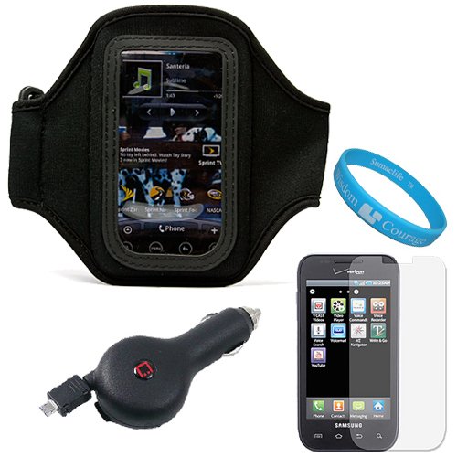 Blackfriday Durable Neoprene Exercise Workout Armband for Samsung Fascinate (Galaxy S) Android Smartphone (Samsung SCH-i500) + Anti Glare Clear Screen Protector + Retractable Car Charger with IC Chip + SumacLife TM Wisdom Courage WristbandThis Neoprene Workout Armband has been manufactured to fit the Samsung Fascinate Galaxy S Android Smartphone. The neoprene material used to make this armband protects your phone from unwanted bumps, dents, and scratches from accumulating. This neoprene material is also very light weight and avoids moisture build up, making this armband great for working out at the gym, jogging or running around. This armband has been designed with a clear plastic window to allow you to view your phone's display screen and see who's calling you. Its Velcro adjustable strap allows you to adjust this armband to a more comfortable fit. You'll be impressed with not only the quality but comfort that this armband has to offer. (Samsung Fascinate Galaxy S Not Included) Package also includes a Clear Screen Protector for the Samsung Fascinate Galaxy S. This screen protector will prevent scratches on your phone's lcd display screen without sacrificing visibility. The screen protector comes with a cleaning cloth and a plastic card to help you apply the screen protector. Features: Bubble-Free Application, Anti-Reflection Screen, free from Fingerprints, and dust repelling. + Aslo included is a Retractable Car Charger with IC Chip for you can charge your phone in your car. This charger features a LED Power Indicator and Overcharge Protection. Feature The cable coils into the charger with the bush of a button eliminating the problem of tangled cables. + SumacLife TM Wisdom Courage WristbandCheap Durable Neoprene Exercise Workout Armband for Samsung Fascinate (Galaxy S) Android Smartphone (Samsung SCH-i500) + Anti Glare Clear Screen Protector + Retractable Car Charger with IC Chip + SumacLife TM Wisdom Courage Wristband ![]() | |
