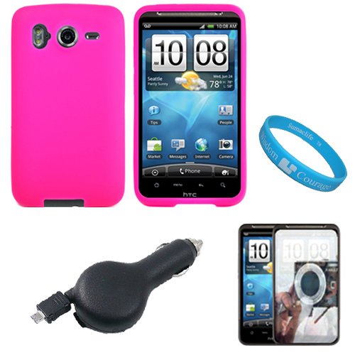 Blackfriday Hot Pink Rubberized Soft Silicone Skin Cover Case for AT&T Wireless New HTC Inspire 4G Android Smartphone + Mirror Screen Protector + Black Retractable Car Charger with IC Chip + SumacLife TM Wisdom Courage WristbandSafely carry and protect your HTC Inspire 4G with this Premium Rubberized Soft Silicone Skin Cover Case. This elegant skin tight case has been perfectly manufactured to fit AT&T's New HTC Inspire 4G. The high-grade gel silicone used to create this skin cover resists tarring and deformation. It also protects and prevents unnecessary bumps, dents, and scratches from accumulating on your phone. Precise cut-outs have been made for the camera, headset, and charger to allow you full access to every function your HTC phone has to offer. When it comes to your daily travel and protection needs this silicone skin cover case makes the perfect the solution. You'll be impressed with not only the quality but the smooth-textured design of this case. (Phone NOT INCLUDED) Package also includes a Mirror Screen Protector. This screen protector will prevent scratches on your phone's lcd display. This screen protector also acts like a mirror when screen is in sleep mode or turned off. The screen protector comes with a cleaning cloth and a plastic card to help you apply the screen protector. Features: Bubble-Free Application, free from Fingerprints, and dust repelling. + Also included is a Retractable IC Chip Car Charger. The power cord coils into the charger with the push of a button to avoid any tangled cables. This charger also features a LED Power Indicator light to let you know when your device is charging. It has also been equipped with Overcharge Protection, meaning you can leave your device connected to this charger without causing any damage to your device or the battery. + SumacLife TM Wisdom Courage WristbandCheap Hot Pink Rubberized Soft Silicone Skin Cover Case for AT&T Wireless New HTC Inspire 4G Android Smartphone + Mirror Screen Protector + Black Retractable Car Charger with IC Chip + SumacLife TM Wisdom Courage Wristband ![]() | |