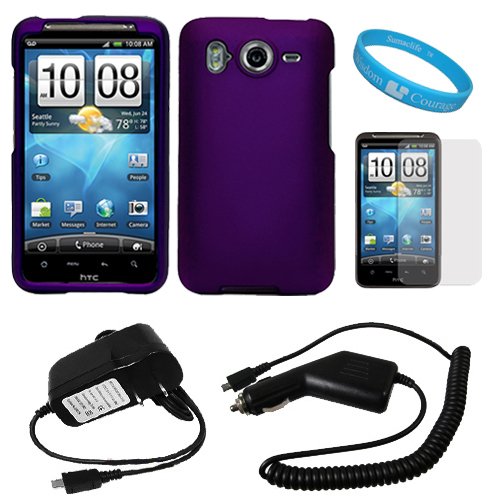 Blackfriday Purple Durable Protective Rubberized Crystal Hard Case Cover for AT&T Wireless New HTC Inspire 4G Android Smart Phone + Clear Screen Protector + Black Rapid Travel Wall Charger with IC Chip + Black Rapid Car Charger with IC Chip + SumacLife TM Wisdom Courage WristbandNow you can safely carry and protect your HTC Inspire 4G with this stylish protector case. The quality material used to create this case provides your phone with protection and prevents unnecessary bumps, dents, and scratches from accumulating on your phone. This case cover has been designed as a two piece snap on case to protect the front and back or your HTC Inspire 4G. Its durable hard shell exterior provides your phone with excellent shock absorbance and impact protection. When it comes to your daily travel and protection needs this case is the perfect solution. You'll be impressed with not only quality but the smooth textured design of this case. (Phone NOT INCLUDED) Package also includes a Clear Screen Protector. This screen protector will prevent scratches on your phone's lcd display screen without sacrificing visibility. The screen protector comes with a cleaning cloth and a plastic card to help you apply the screen protector. Features: Bubble-Free Application, free from Fingerprints, and dust repelling. + Also includes a Rapid Travel Wall Charger and Rapid Car Charger with IC Chip. These chargers feature an LED Power Indicator light to let you know when your device is charging. It has also been equipped with Overcharge Protection, meaning you can leave your phone connected to this charger without causing any damage to your battery or your phone. + SumacLife TM Wisdom Courage Wristband (Phone is NOT INCLUDED)Cheap Purple Durable Protective Rubberized Crystal Hard Case Cover for AT&T Wireless New HTC Inspire 4G Android Smart Phone + Clear Screen Protector + Black Rapid Travel Wall Charger with IC Chip + Black Rapid Car Charger with IC Chip + SumacLife TM Wisdom Courage Wristband ![]() | |