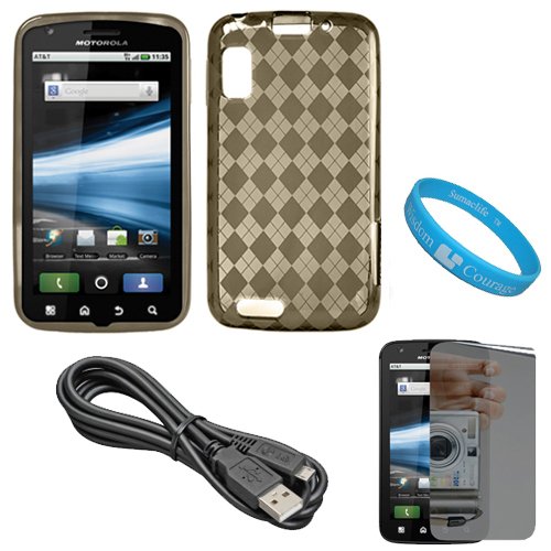 Blackfriday Smoke Argyle Premium Thermoplastic Polyurethane Protective TPU Silicone Skin Cover Case for AT&T New Motorola Atrix 4G Dual Core Android Smart Phone MB860 (Olympus/Atrix 4G) + Mirror Screen Protector + Black Micro USB Data Cable Cord + SumacLife TM Wisdom Courage WristbandSafely carry and protect your Motorola Atrix 4G phone with this Premium Rubberized TPU Gel Silicone Case Cover. This elegant skin cover case has been perfectly manufactured to fit and compliment the mold of the Motorola Atrix 4G. The Thermoplastic Polyurethane material used to create this skin cover resists, tarring, stretching and deformation. It also protects and prevents unnecessary bumps, dents, and scratches from accumulating on your phone. Each opening for the LCD display screen, jacks, camera, and charger have been precisely cut-out to allow you full access to every function the Motorola Atrix 4G has to offer. When it comes to your daily travel and protection needs, this skin cover is the perfect solution. You'll be impressed with not only the quality but the smooth-textured design of this case. (Phone NOT INCLUDED) Package also includes a Mirror Screen Protector. This screen protector will prevent scratches on your phone's lcd display. This screen protector also acts like a mirror when screen is in sleep mode or turned off. The screen protector comes with a cleaning cloth and a plastic card to help you apply the screen protector. Features: Bubble-Free Application, free from Fingerprints, and dust repelling. + Micro USB Data Cable. Use this cable to synchronize your micro USB device with your PC. At the same time, you'll be charging the battery without having to connect to a wall socketCheap Smoke Argyle Premium Thermoplastic Polyurethane Protective TPU Silicone Skin Cover Case for AT&T New Motorola Atrix 4G Dual Core Android Smart Phone MB860 (Olympus/Atrix 4G) + Mirror Screen Protector + Black Micro USB Data Cable Cord + SumacLife TM Wisdom Courage Wristband ![]() | |