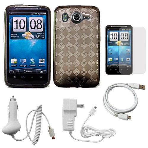 Blackfriday Smoke Argyle Premium Thermoplastic Polyurethane Protective TPU Silicone Skin Cover Case for AT&T Wireless New HTC Inspire 4G Android Smart Phone + Clear Screen Protector + White Rapid Travel Wall Charger with IC Chip + White Rapid Car Charger with IC Chip + Micro USB Data Cable CordSafely carry and protect your HTC Inspire 4G with this TPU Skin Cover. This elegant skin cover case has been perfectly manufactured to fit and compliment the mold of the HTC Inspire 4G. The high-grade Thermoplastic Polyurethane used to create this skin cover resists tarring and deformation. It also protects and prevents unnecessary bumps, dents, and scratches from accumulating on your phone. This silicone skin cover case has been designed with superior front, back, edge, and corner impact resistance to prevent any major or minor damage to your HTC Inspire 4G. Each opening for the camera, headset jack, and charger have been precisely cut-out to allow you full access to every function the HTC Inspire 4G has to offer. When it comes to your daily travel and protection needs this silicone skin is the perfect solution. You'll be impressed with not only the quality, but the style and smooth-textured design of this case. (Phone NOT INCLUDED) Package also includes a Clear Screen Protector. This screen protector will prevent scratches on your phone's lcd display screen without sacrificing visibility. The screen protector comes with a cleaning cloth and a plastic card to help you apply the screen protector. Features: Bubble-Free Application, free from Fingerprints, and dust repelling. + Also includes a Rapid Travel Wall Charger and Rapid Car Charger with IC Chip. These chargers feature an LED Power Indicator light to let you know when your device is charging. It has also been equipped with Overcharge Protection, meaning you can leave your phone connected to this charger without causing any damage to your battery or your phone. + Micro USB Data Cable. Use this cable to synchronize your micro USB device with your PC. At the same time, you'll be charging the battery without having to connect to a wall socket (Phone NOT INCLUDED)Cheap Smoke Argyle Premium Thermoplastic Polyurethane Protective TPU Silicone Skin Cover Case for AT&T Wireless New HTC Inspire 4G Android Smart Phone + Clear Screen Protector + White Rapid Travel Wall Charger with IC Chip + White Rapid Car Charger with IC Chip + Micro USB Data Cable Cord ![]() | |
