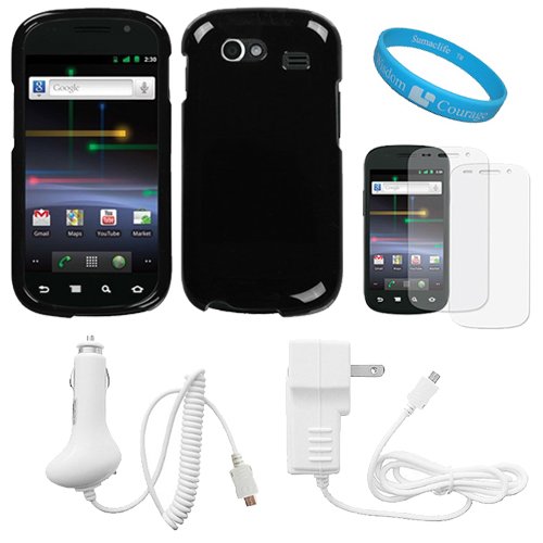 Blackfriday Candy Black Rubberized Protective Crystal Hard Case Cover for T-Mobile Samsung Nexus S Android Smartphone (Samsung GT-i9020) + 2 Piece Clear Screen Protector + White Rapid Travel Wall Charger with IC Chip + White Rapid Car Charger with IC Chip + SumacLife TM Wisdom Courage WristbandPersonalize and protect your phone with this Rubberized Protective Crystal Hard Case Cover. The top quality material used to make this case protects your phone from unwanted bumps and dents. This hard case cover also prevents any unnecessary scratches, chips, and fingerprints from accumulating on your mobile phone. Custom fitted for to fit the Samsung Nexus S. This case has openings for volume / side buttons, camera lens, charger jack, speakers, and kickstand to allow you full access to all functions. You'll be impressed with not only the quality but the style and durability this case has to offer your phone. Package also includes a 2 Piece Clear Screen Protector. This screen protector will prevent scratches on your phone's lcd display screen without sacrificing visibility. The screen protector comes with a cleaning cloth and a plastic card to help you apply the screen protector. Features: Bubble-Free Application, free from Fingerprints, and dust repelling. + Also includes a Rapid Travel Wall Charger and Rapid Car Charger with IC Chip. These chargers feature an LED Power Indicator light to let you know when your device is charging. It has also been equipped with Overcharge Protection, meaning you can leave your phone connected to this charger without causing any damage to your battery or your phone. + SumacLife TM Wisdom Courage Wristband Cheap Candy Black Rubberized Protective Crystal Hard Case Cover for T-Mobile Samsung Nexus S Android Smartphone (Samsung GT-i9020) + 2 Piece Clear Screen Protector + White Rapid Travel Wall Charger with IC Chip + White Rapid Car Charger with IC Chip + SumacLife TM Wisdom Courage Wristband | |