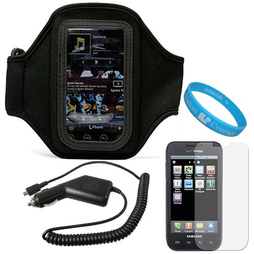 Blackfriday Durable Neoprene Exercise Workout Armband for Samsung Fascinate (Galaxy S) Android Smartphone (Samsung SCH-i500) + Anti Glare Clear Screen Protector + Rapid Car Charger with IC Chip + SumacLife TM Wisdom Courage WristbandThis Neoprene Workout Armband has been manufactured to fit the Samsung Fascinate Galaxy S Android Smartphone. The neoprene material used to make this armband protects your phone from unwanted bumps, dents, and scratches from accumulating. This neoprene material is also very light weight and avoids moisture build up, making this armband great for working out at the gym, jogging or running around. This armband has been designed with a clear plastic window to allow you to view your phone's display screen and see who's calling you. Its Velcro adjustable strap allows you to adjust this armband to a more comfortable fit. You'll be impressed with not only the quality but comfort that this armband has to offer. (Samsung Fascinate Galaxy S Not Included) Package also includes a Clear Screen Protector for the Samsung Fascinate Galaxy S. This screen protector will prevent scratches on your phone's lcd display screen without sacrificing visibility. The screen protector comes with a cleaning cloth and a plastic card to help you apply the screen protector. Features: Bubble-Free Application, Anti-Reflection Screen, free from Fingerprints, and dust repelling. + Aslo included is a Rapid Car Charger with IC Chip for you can charge your phone in your car. This charger features a LED Power Indicator and Overcharge Protection. + SumacLife TM Wisdom Courage Wristband Cheap Durable Neoprene Exercise Workout Armband for Samsung Fascinate (Galaxy S) Android Smartphone (Samsung SCH-i500) + Anti Glare Clear Screen Protector + Rapid Car Charger with IC Chip + SumacLife TM Wisdom Courage Wristband | |