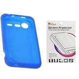 GTMax Blue Soft Rubber Silicone Skin Protector Cover Case + Clear LCD Screen Protector for Verizon HTC 6350 DROID INCREDIBLE 2 Android Phone