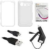 Buy GTMax White Rubber Hard Snap On Plastic Protector Cover Case + Clear LCD Screen Protector + Black Car Charger + Sync Transfer USB Data Cable for Verizon HTC 6350 DROID INCREDIBLE 2 Android Phone deal Micro-USB Sync Transfer & Charging USB Data Cable Brand new generic accessories. This USB data cable enables you to connect your cellular phone to your computer for: Wireless internet access, Sending and receiving email, FTP (Uploading and downloading files), Downloading Music / Pictures / Ring tones, Editing your phone book / SMS, Synchronizing calendar entries. In order for your data cable to perform above functions, you must obtain the required software independently. USB driver; program software & technical support not included. Micro USB Rapid Car Charger Vehicle Power Adapter with IC Chip Brand new generic car charger. Vehicle Lighter Adaptor. (12~24v DC). Intelligent IC chip inside recognizes a full battery and automatically switch to a saver. Plug never heats or overcharges the battery. Short circuit protection. LED charging indication. Can Charge Ni-Mh, Ni-cd and Li-Ion Battery. For HTC Verizon 6350 Droid Incredible 2 LCD Screen Protector Flim Guard Brand new generic screen protector. Clear, ultra thin and durable. Custom designed to fit your PDA/Smartphone. Shield and protect your screen from unwanted scratches. Quickly and easily adhere directly to your screen. Non-adhesive backing, will not leave sticky residue. Include a cloth, soft card & one screen protector. Phone not included. For HTC Verizon 6350 Droid Incredible 2 Rubberized Hard Cover Case - White Brand new generic case. Durable hard rubberized material. Custom made to fit your phone perfectly. Easy access to all buttons and features. Easy installation, just snap on your phone without any tools. Plug your charger, cable or headset without removing the case. Prevents damage to your phone from objects in your pockets or purse. Phone not included.